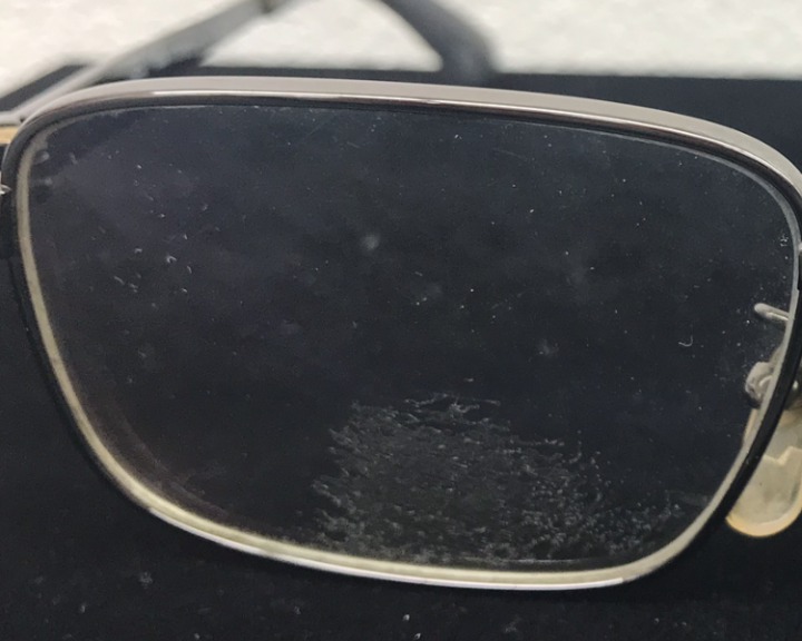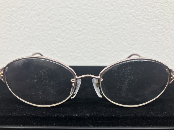 メガネケースにしまわずそのままポケットやバックにいれてしまったことで、付いてしまったキズと思われます。