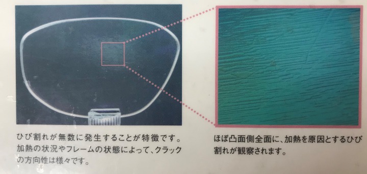 メガネレンズは、55℃以上に加熱されることでクラック(ひび)が入ることがあります。