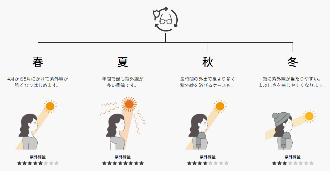トランジションズの調光レンズは、お仕事でもプライベートでも、オールシーズン活躍できる便利なレンズです。