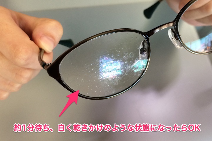 くもり止めが少し乾くまで待ちます。写真のように白く浮いてきたらOKのサインです。