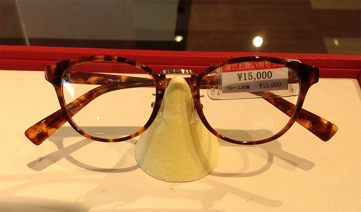 今の流行のデザインはクラシック系で、大ぶりのメガネや丸メガネが売れております。