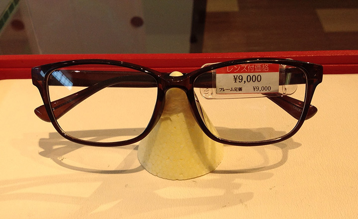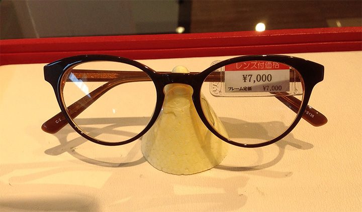 ここで、ちょっと写真の値札にご注目ください。値札の下の方に小さく「フレーム価格」とございますが、その上の「レンズ付き価格」と値段が同じ……つまりレンズ代が丸々タダなんです。(当店、大丈夫でしょうか……?)