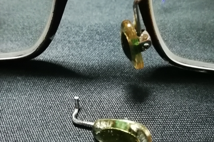 クリングス(鼻パッド)は普段から鼻に触れる部分かつ、繊細な部位なため、メガネフレームの中では壊れやすい部分になります。例えば、着脱時に顔やケース、机などにぶつかって折れてしまう、長く同じフレームを使っているうちに折れてしまった、ということが発生することもあります。