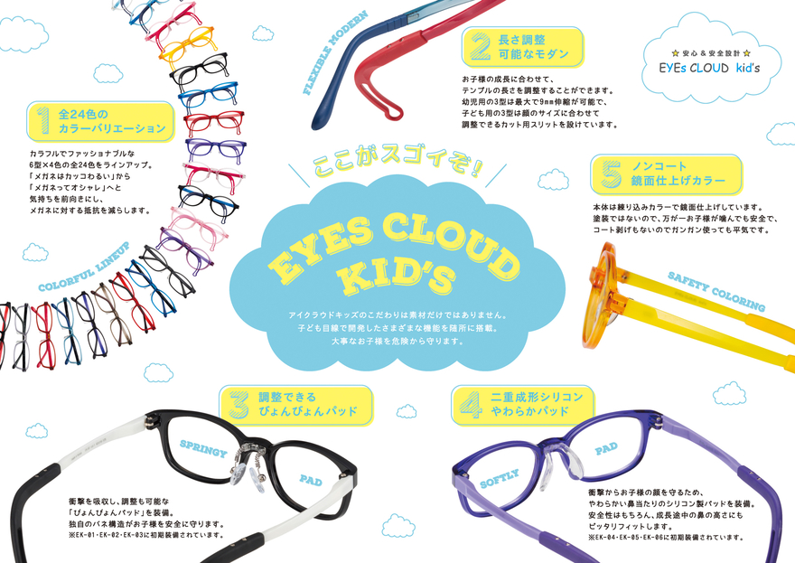 ↑「EYEsCLOUD KID’S」という子供専用のシリーズもあるので小さいお子様でも安心です。