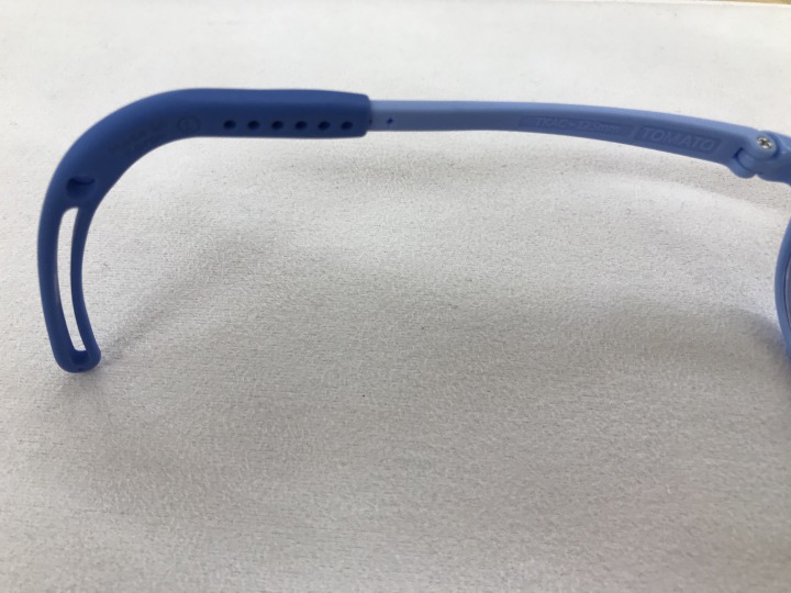 トマトグラッシーズは、頭が小さかったり、鼻がまだ低くてずれ下がったりでメガネを掛けるのを嫌がるお子様にも、心地よく安心して掛けられるメガネフレームです。