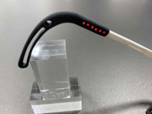 ※黒色のテンプルなので穴の位置が見づらかった為赤い印をつけております↓