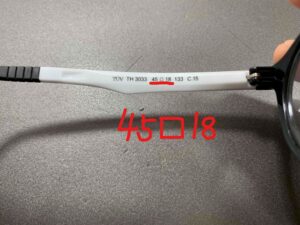 ↑テンプル部分にも書いています。45が玉型サイズで18が鼻幅です。