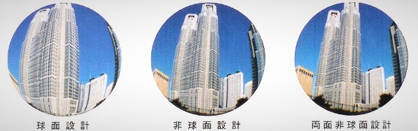レンズには、球面設計、非球面設計、両面非球面設計とあります。