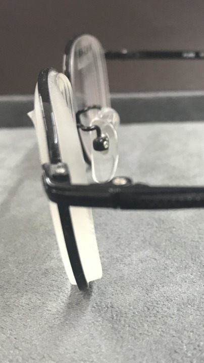 正面から見ても球面レンズは耳側が厚くレンズの向こう側がゆがんで見えています。
