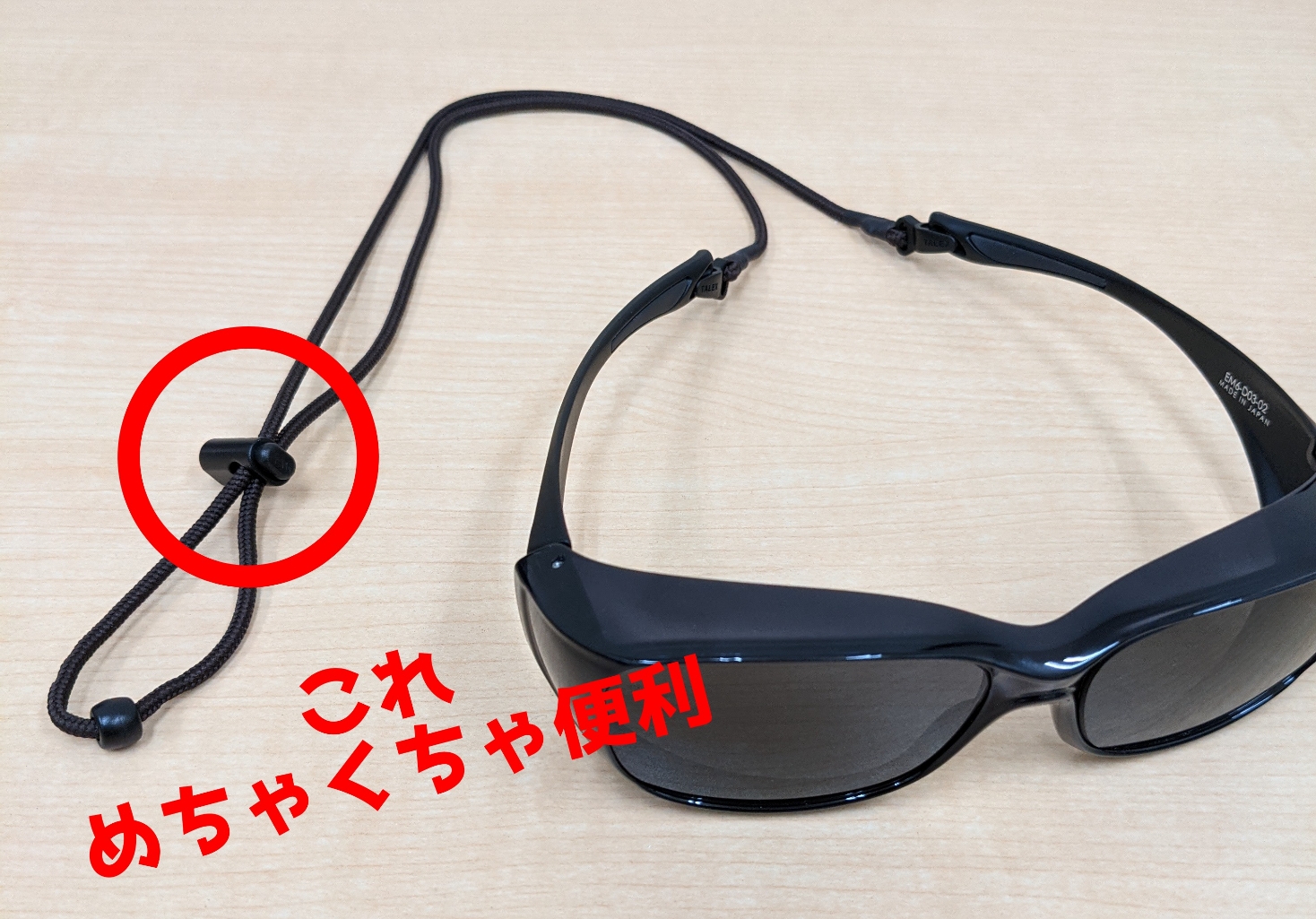 眼鏡を外した時に紐が長いとみぞおち辺りの微妙な位置でボインボイン揺れて邪魔だったり