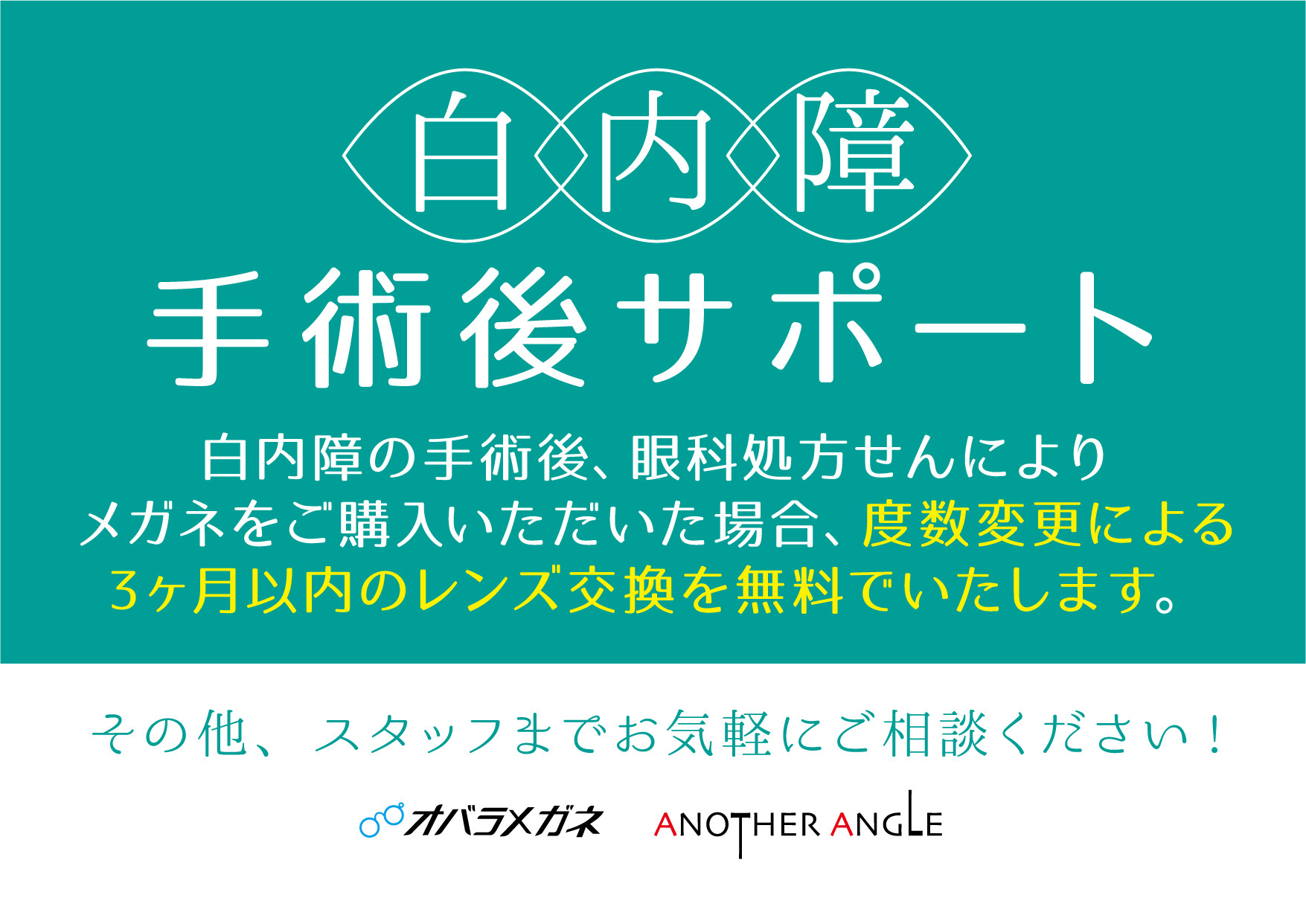 今回は、当店のサポート「白内障術後サポート」のご紹介をします。