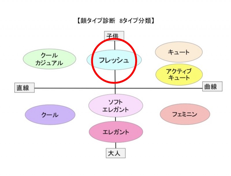 8つのタイプのどこに自分の顔が属するかを見極め、似合うを理論的に分析する診断です。