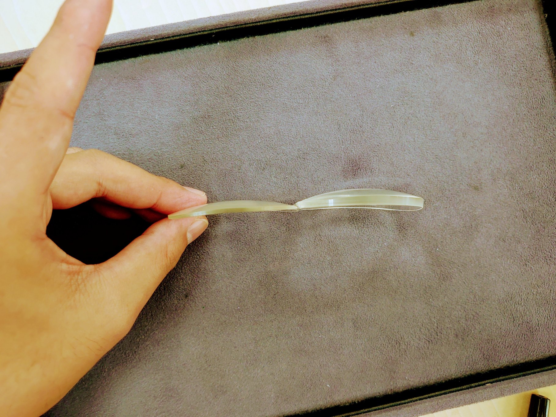 しかし、凸レンズは大きく作成すると中央が厚く仕上がるデメリットがございます。