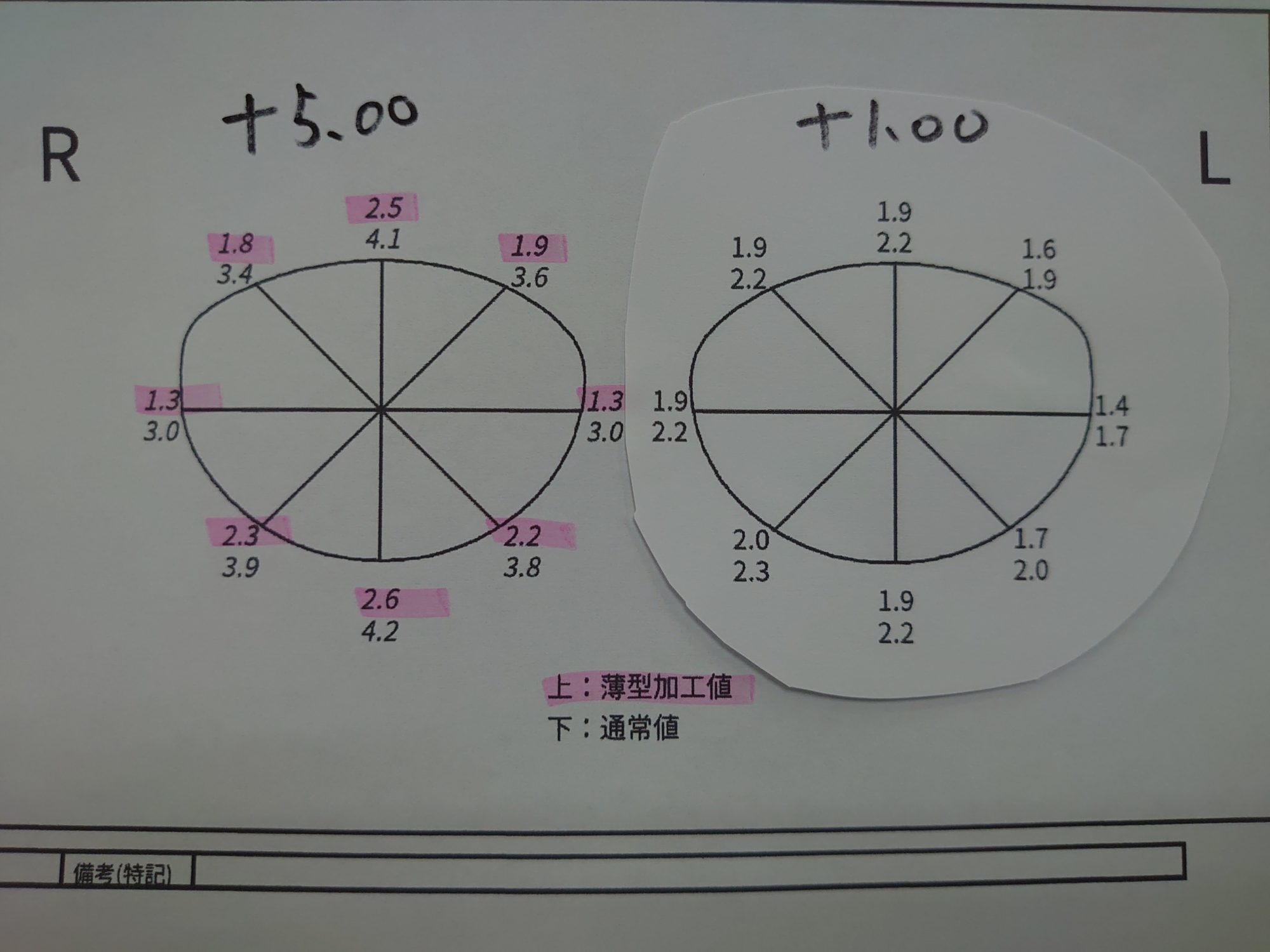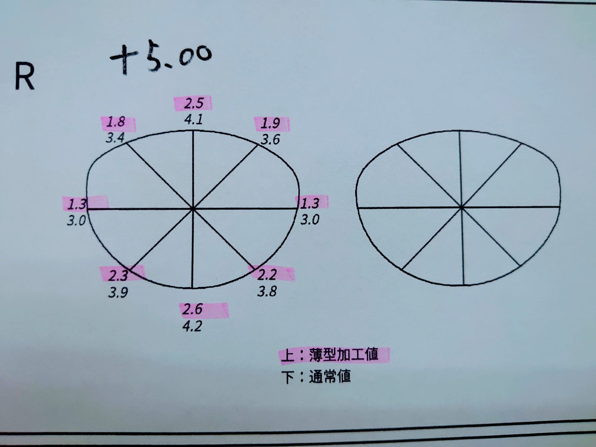 実は度が弱い場合もわざと少し厚くレンズを作成している場合もございます。