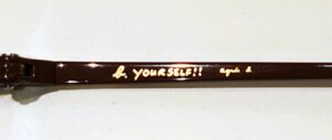 そして、テンプルの内側にはデザイナーの“b. YOURSELF(あなたのままに)!!”と、素敵なメッセージが刻まれています。