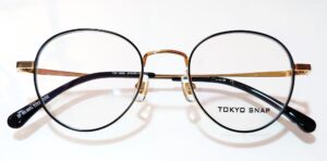 ボストン型でも特に人気の高いレンズの周り(リム)が黒色で、左右のレンズをつなぐ部分(ブリッジ)と両テンプルがゴールドのメタルフレームです。