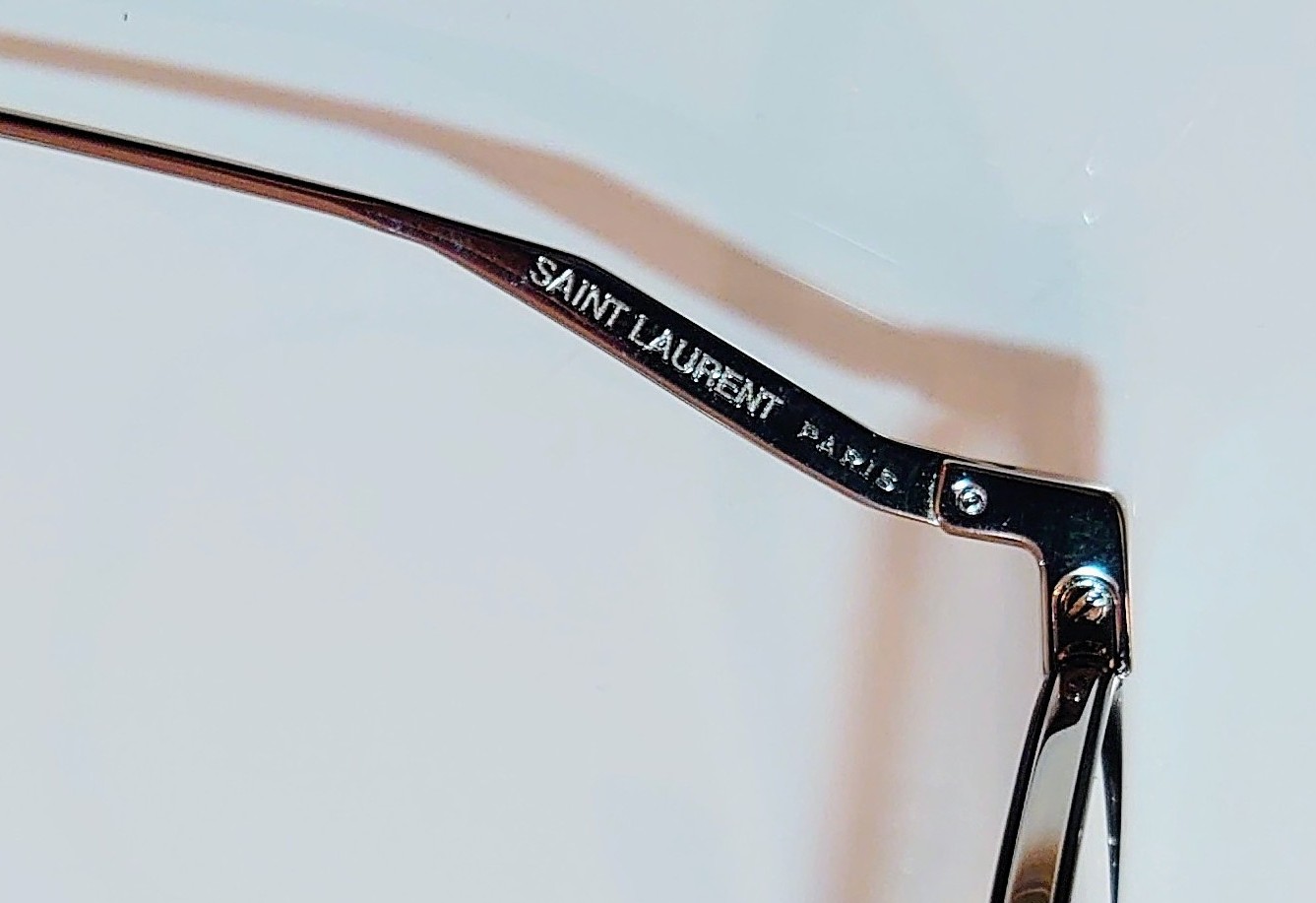 右テンプルの下側に施された「SAINT LAURENT 」の刻印が、隠れたお洒落を演出してくます。