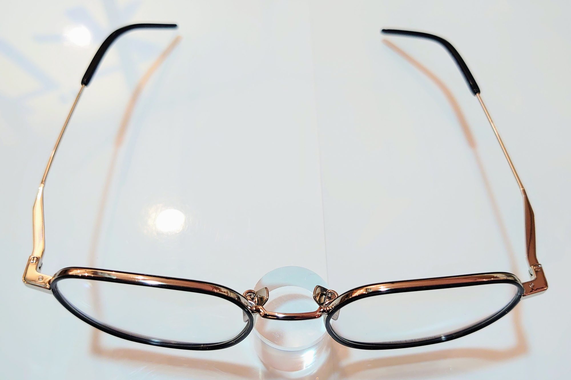 こちらは今じわじわ人気が出ている“インナーセル”デザインで、メタルフレームの内側にセル素材を使うことでレンズの周り(リム)に厚みがでるデザインのため、レンズの厚みが気になりにくくなっています。