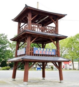 三笠市の中央公園にそびえる 高さ約8mの巨大やぐらを囲み、大人も子供も
