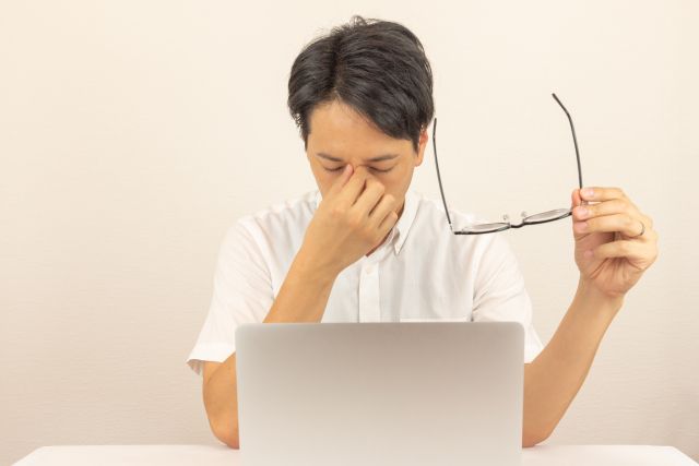 近くを見るときは眼の筋肉を収縮させてピント調整機能を合わせるため、眼の負担が大きくなります。