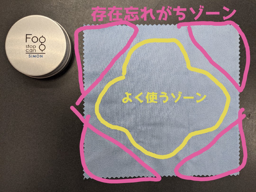 そのままくもり止めクロスを使い続けていくと、最終的にはどの角を使ったのか使ってないのかが本当にわからず、私たちスタッフも困っています。