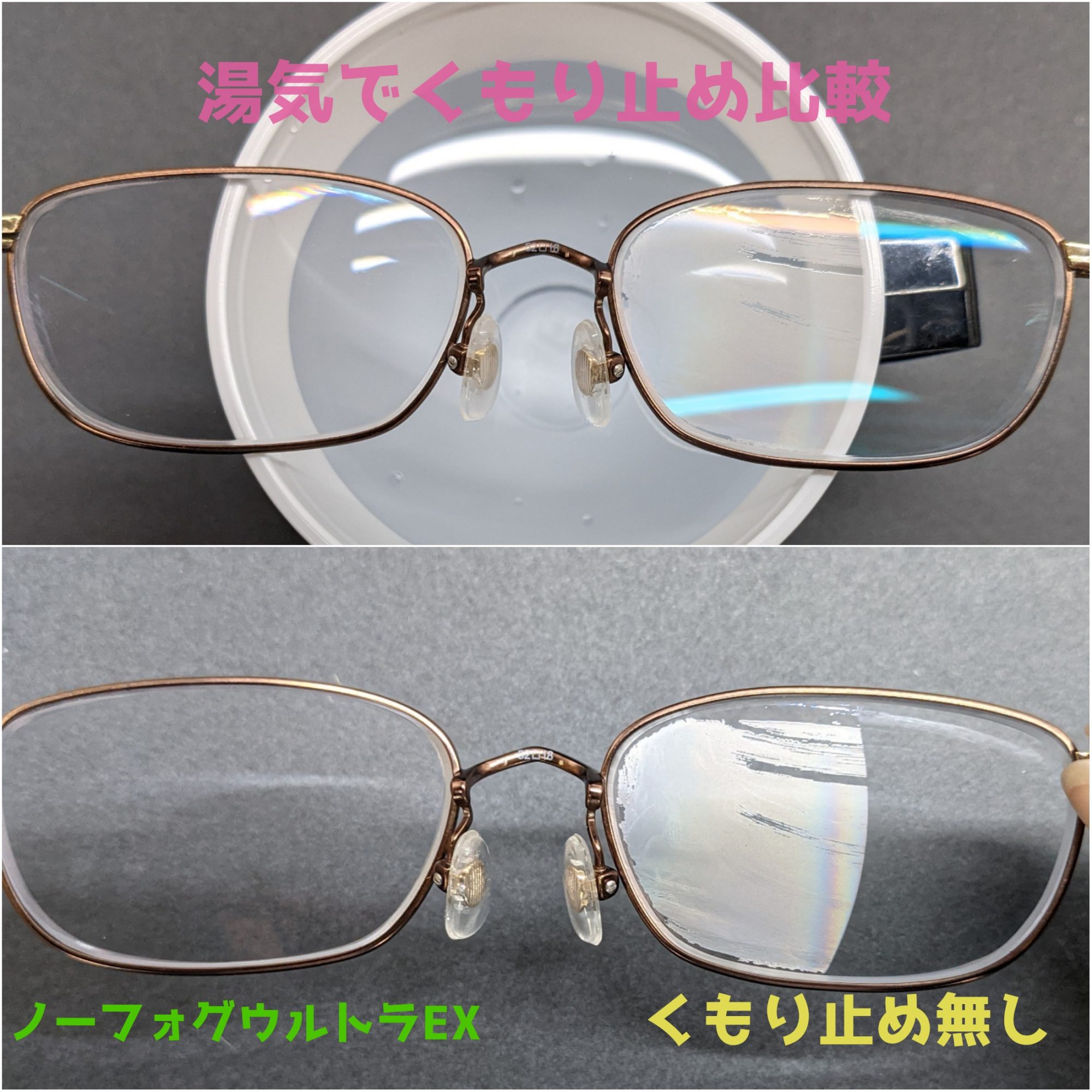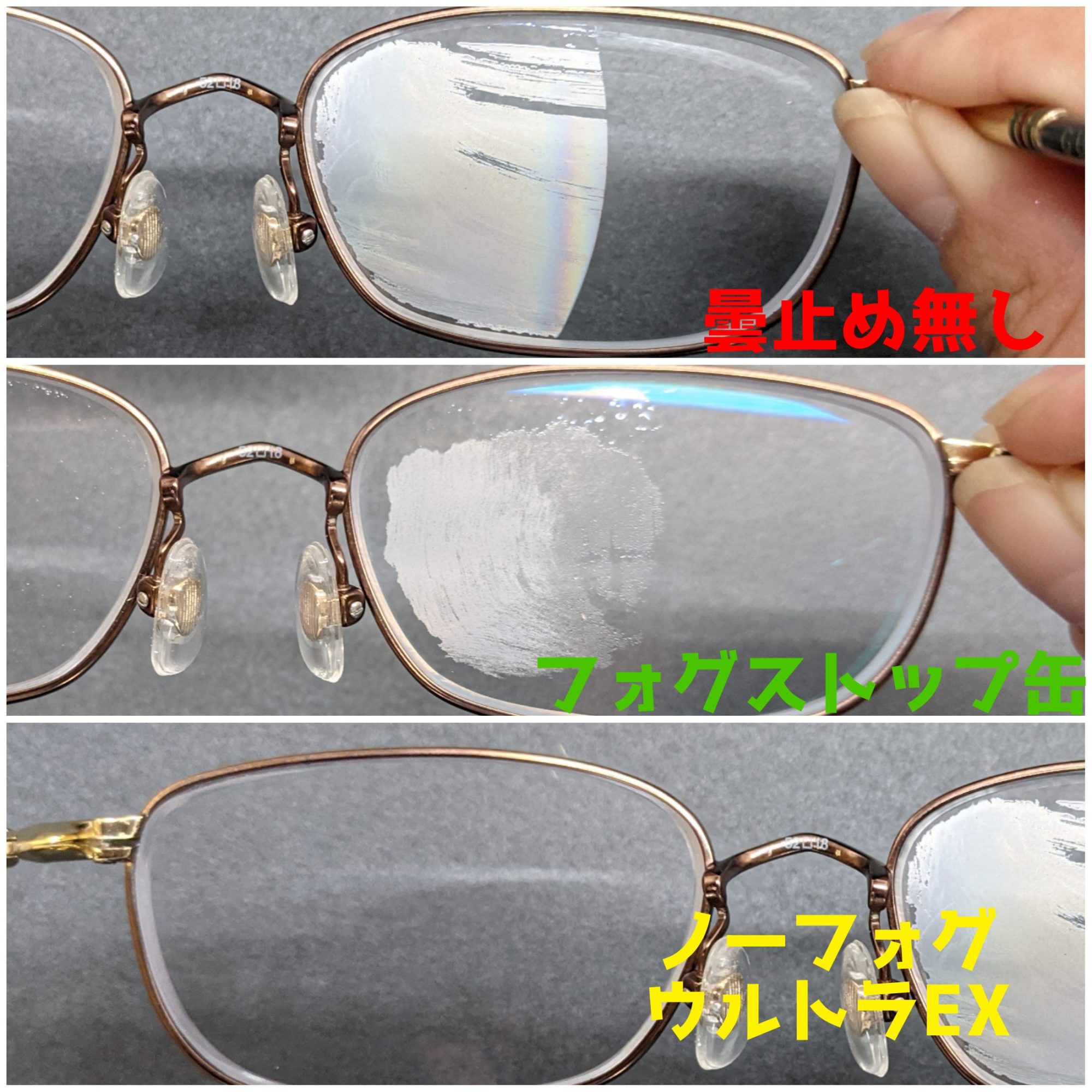 クロスタイプのメガネのくもり止めは手が汚れないのがメリットでしたが、