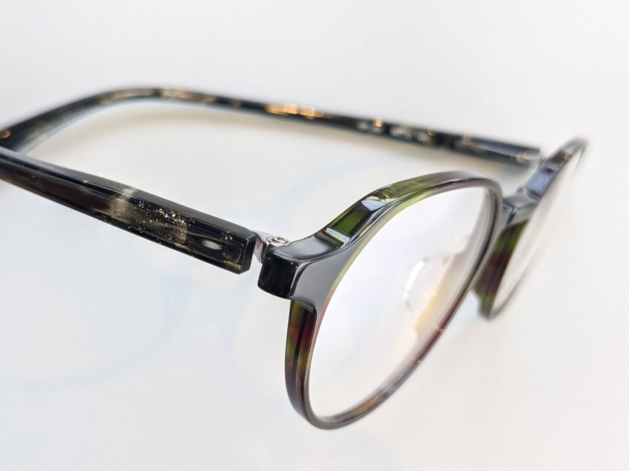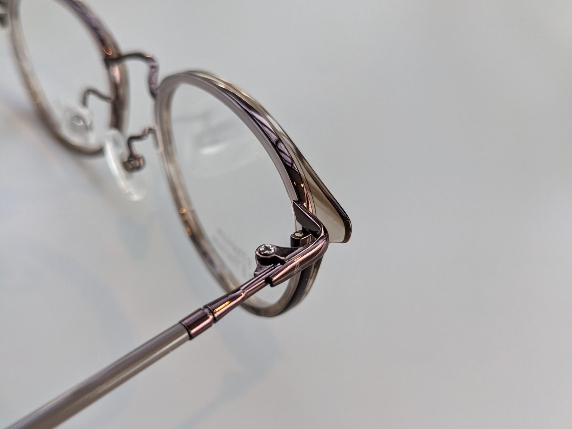 テンプルは更に細かくラメが入っていて角度によって表情が変わる飽きのきにくいフレームです。