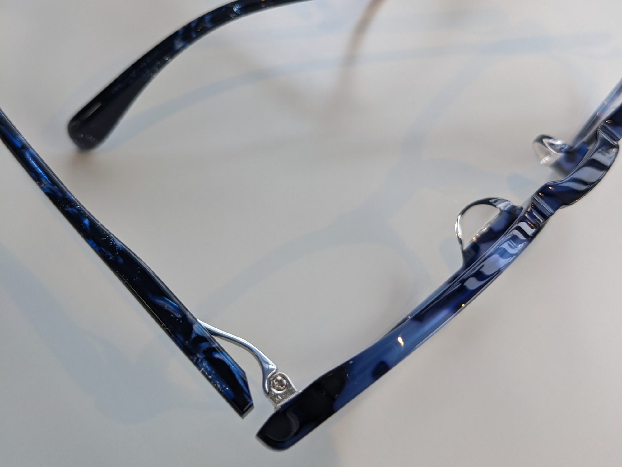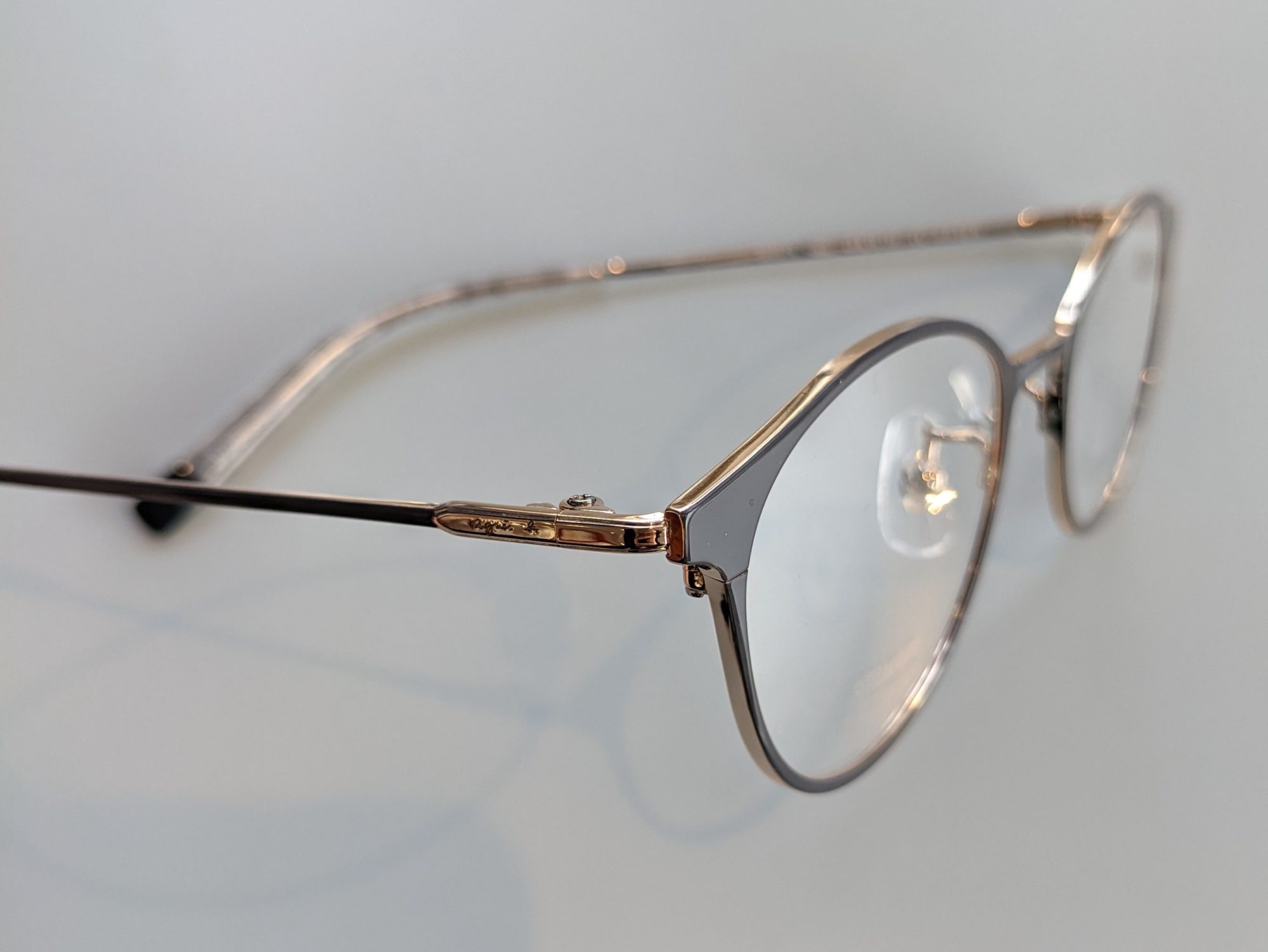目尻に繋がるフロントのプラスチック部分が貼り合わせになっているため厚みが無く、透明感がとても綺麗です。