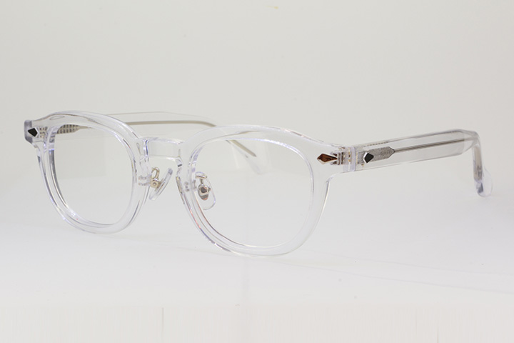 クリアカラーのメガネフレームは顔なじみが良く、適度なカジュアルさが人気。