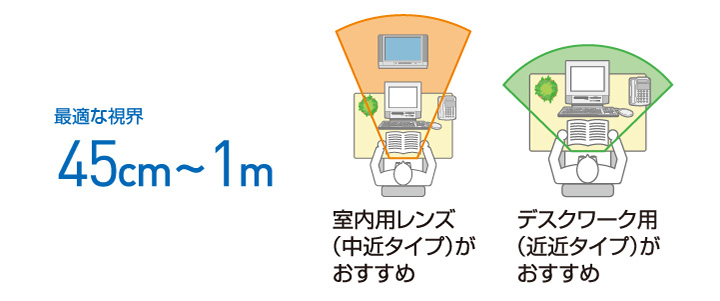 パソコンを中心としたデスクワークには、手元や画面を見たり、机の範囲内の視界の確保が必要です。