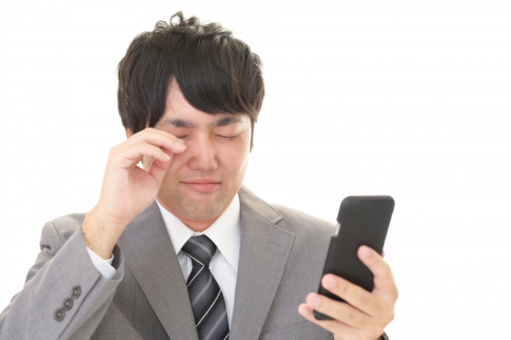 スマホを見ただけでなんだか疲れやすくなった気がする、と感じた場合は、スマホ老眼の兆候ありです。我慢を続けると、眼精疲労にもつながって、より一層疲れ・ストレスを感じるようになります。