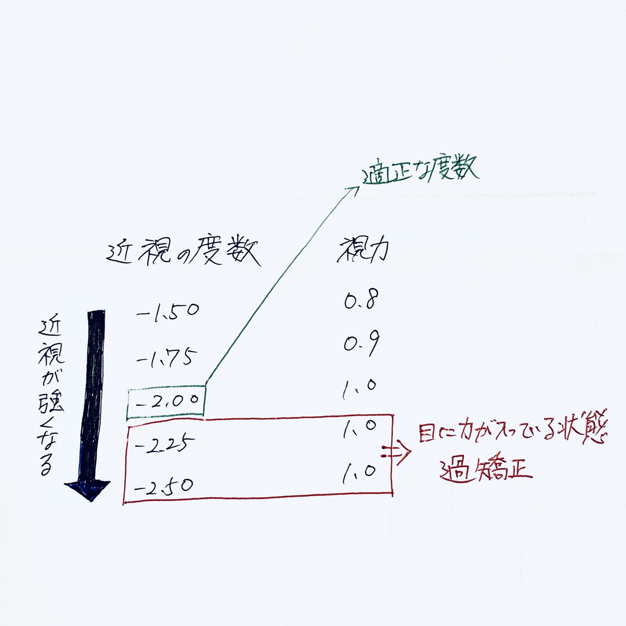 適正な度数よりも強い度数のメガネ度数を過矯正と言います。